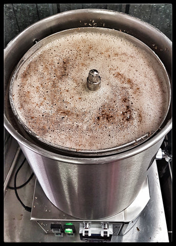 The Camurri then set to work, using it's mash agitators to extract as much sugar out of the grain as possible. I then raised the basket to drain & sparge over the grain bed.